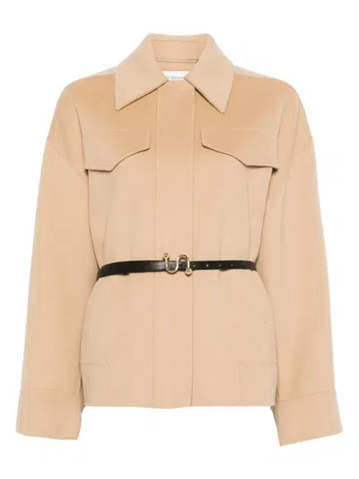 Long Double-breasted Blazer With Arrow Lapel Collar In Neutral