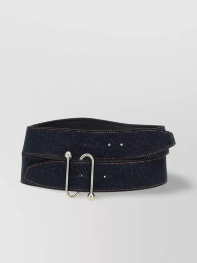 Wide Denim Texture Belt With Silver Buckle In Blue