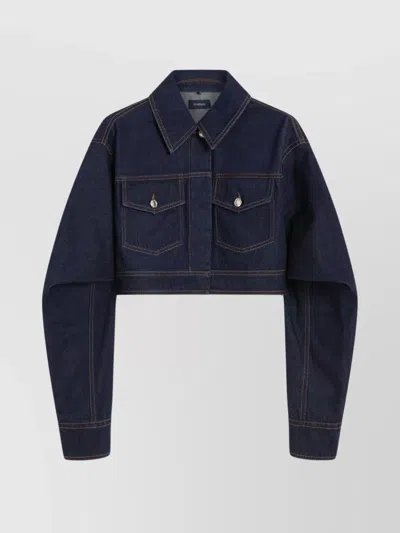 Cropped Denim Jacket With Collared Neck In Blue