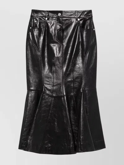 Midi Skirt With Crystal Embellishments And Semi-sheer Panels In Black
