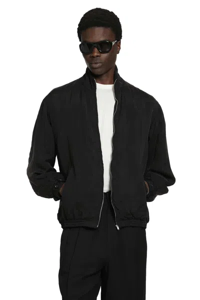 Bright Twill Open Collar Short Sleeve Shirt In Black