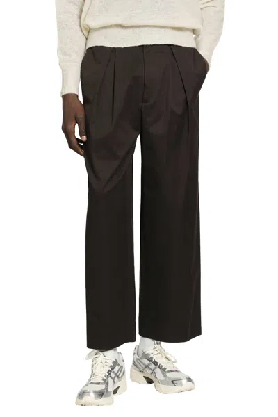 Cotton Satin Easy Wide Trouser In Brown