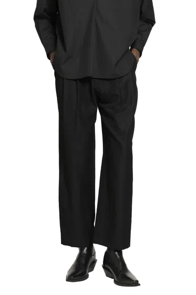 Twill Easy Long Wide Trousers In Black