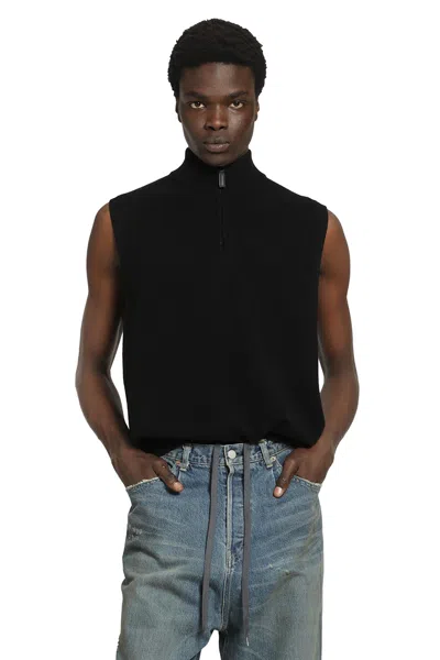 Extra Fine Wool Knit Half Zip Vest In Black