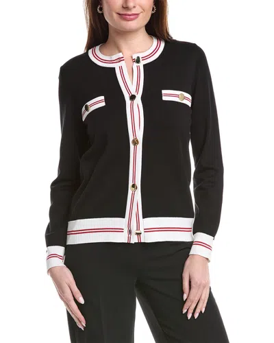 St. John Textured Rib Knit Cardigan In Black