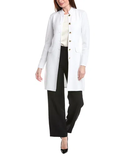 St. John Banded Collar Five-button A-line Long Jacket In White