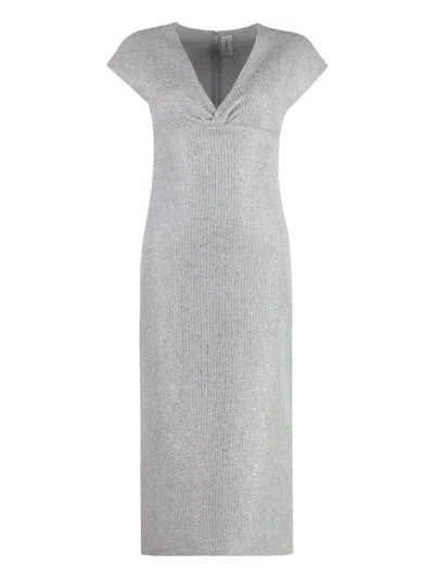 盖袖金银丝连衣裙
