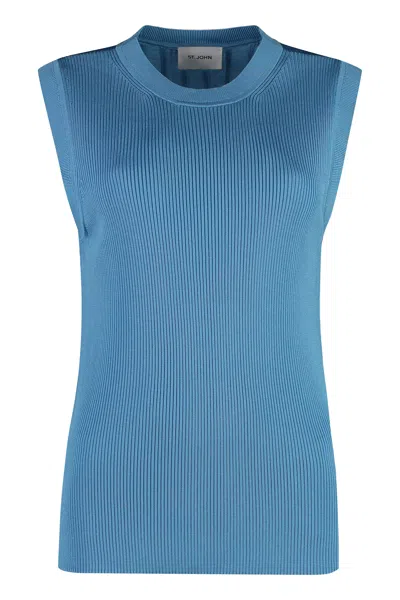 Ribbed Tank Top In Light Blue