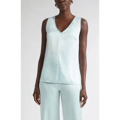 St. John Liquid Satin V-neck Tank In Blue