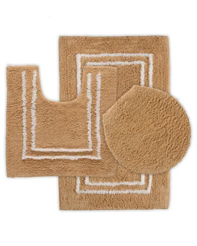 Tufted 3pc Cotton Bath Rug Set With Lid Cover In Sand