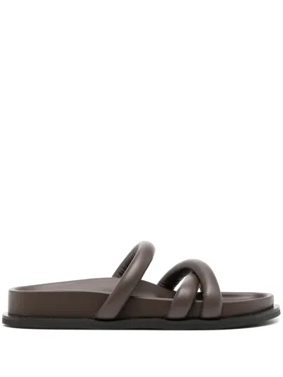 Lattice Woven Leather And Suede Ballet Flats In Brown