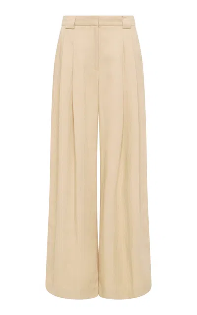 Pleated Tencel-linen Wide-leg Pants In Champagne