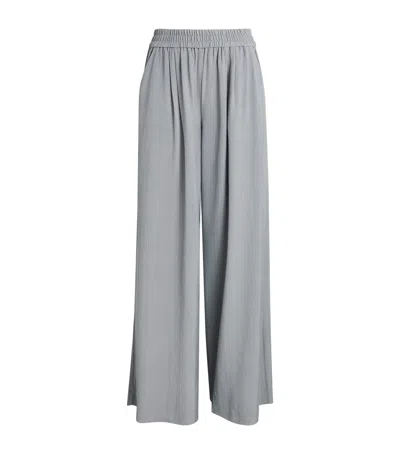 Pinstriped Wool-blend Twill Wide-leg Pants In Black