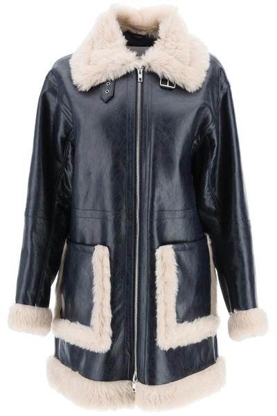 Haley Shearling-trimmed Faux-leather Coat In Blue