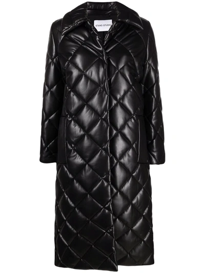 Dorothea Quilted Leatherer Long Coat In Black