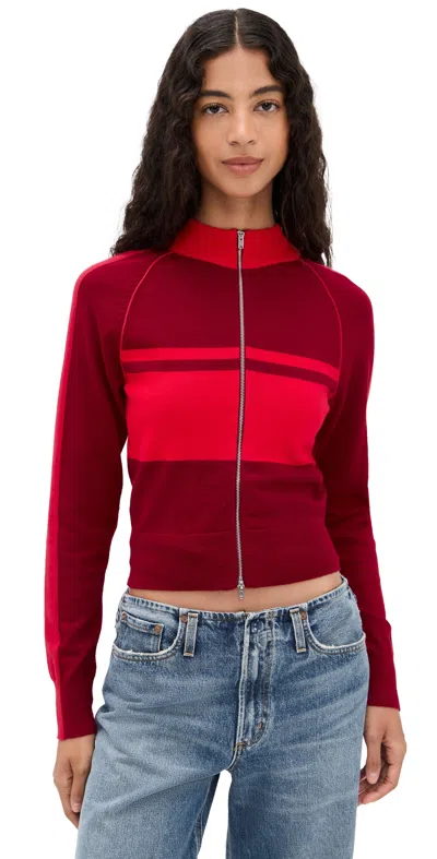 Ringer Track Tee Burgundy/white/light Blue In Red