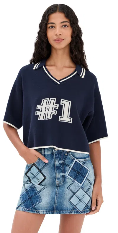 V Neck Varsity Jersey Navy/white In Multi