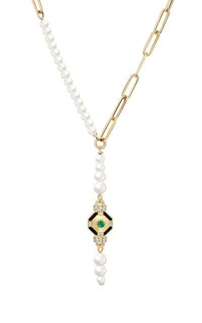 Genil Enchantress 18k Yellow Gold Pearl; Emerald Necklace In Green