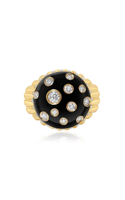 Toadstool 18k Yellow Gold Diamond Enamel Bombé Ring In Black