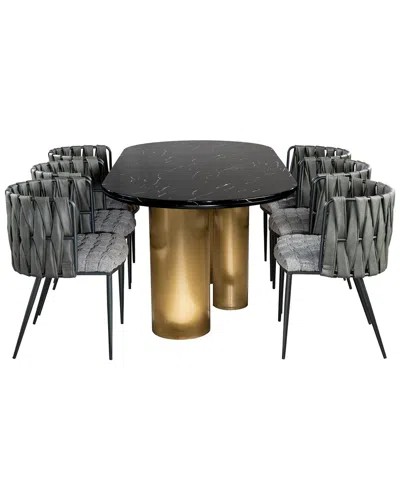 Balmain Marble Top Oval Dining Set In Black