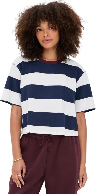 Wide Stripe Pique Boxy Crew New Navy/cream In Multi