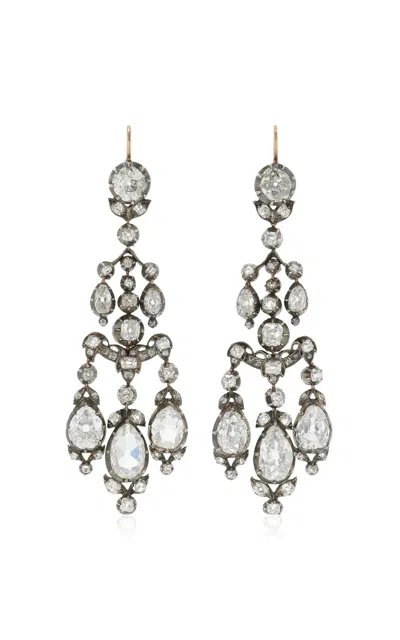Vintage Antique Silver; Gold; Diamond Chandelier Earrings In White