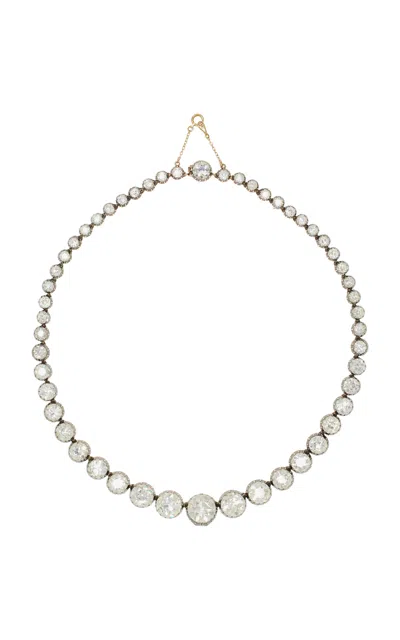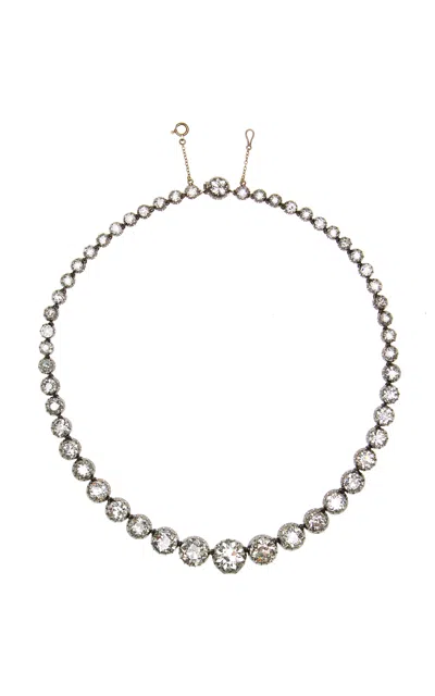 Vintage Silver And 18k Yellow Gold Diamond Rivierere Necklace In White