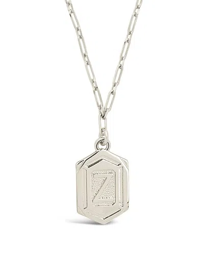 Rhodium Plated Hexagon Tag Initial Pendant Necklace (a-z)