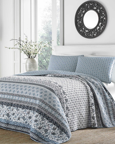 Field Of Paisley 100% Cotton Reversible Quilt Set In Blue