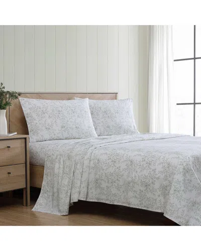 200 Thread Count Hawley Floral Cotton Percale Sheet Set In White