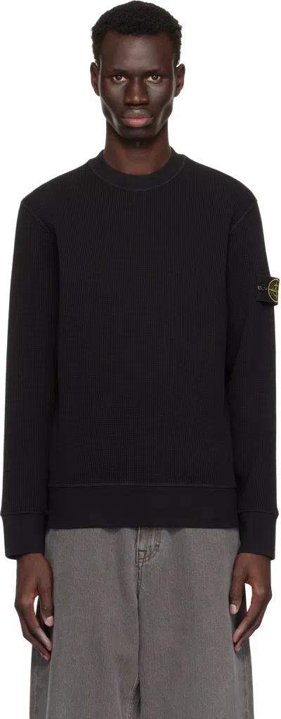 Ribbed Textured Black Sweater With Distinctive Logo Patch