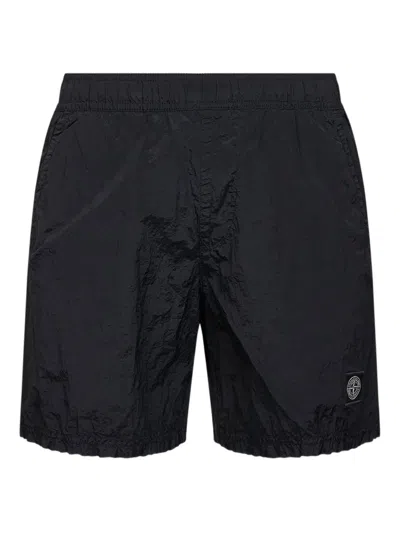 Slim Fit Swim Trunks With Compass Patch In Black