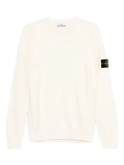 Crew Neck Ivory Sweater With Subtle Texture And Logo Patch In White
