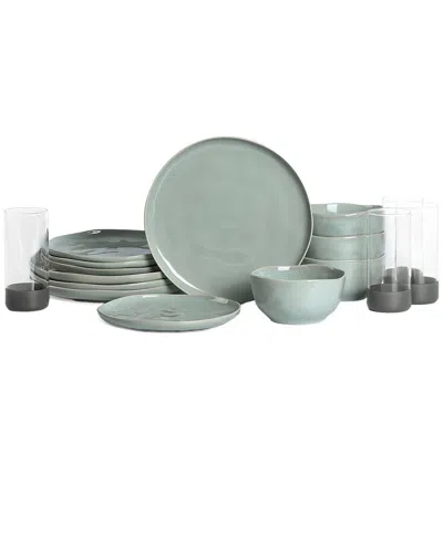Baskerville 16pc Stoneware Dinnerware Set With Borosilicate Glass In Green