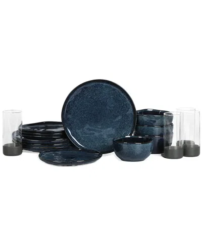 Rio Stoneware 16-piece Dinnerware Set With Glasses In Blue