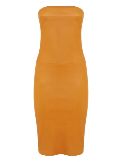 MONICA无肩带绒面革中长连衣裙