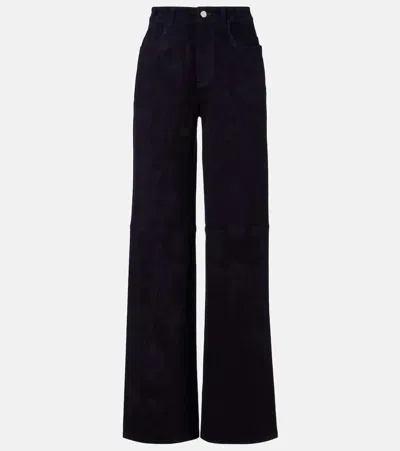 Cassidy High-rise Wide-leg Suede Pants In Noir