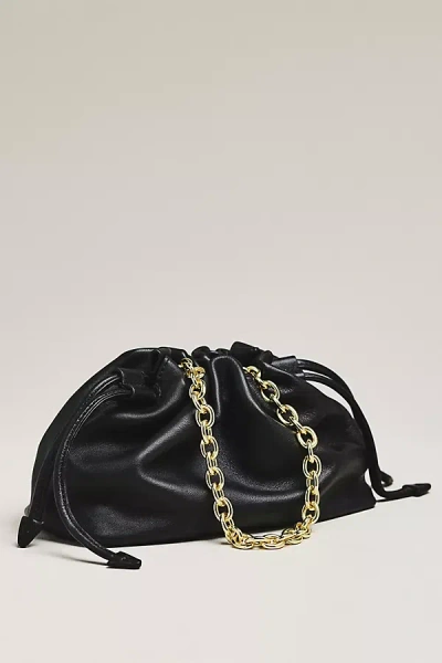 Alexandra Leather Petite Drawstring Clutch In Black