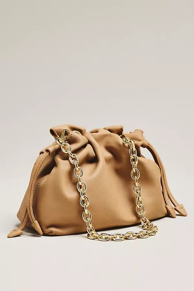 Alexandra Leather Petite Drawstring Clutch In Neutral