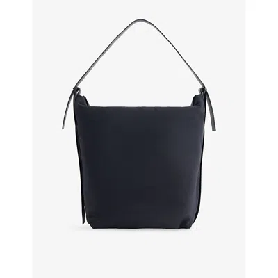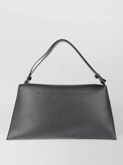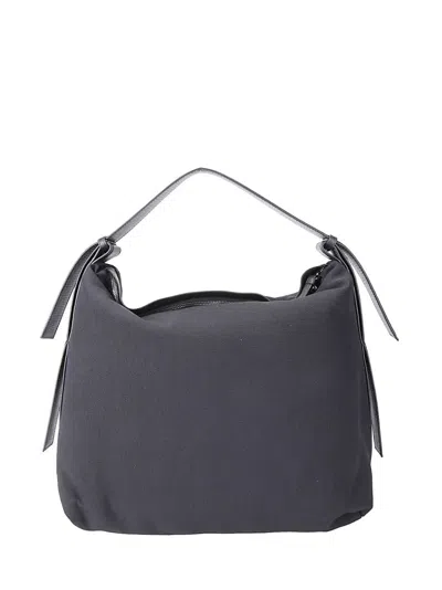 Minimalist Nylon Shoulder Bag With Leather Accents In Gray