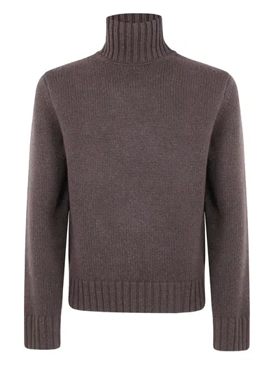 Classic Brown Knit Sweater With Ribbed Cuffs And Hem In Gray