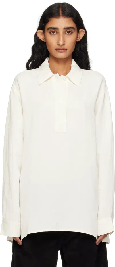 Karst Linen Blend Collarless Long Sleeve Shirt In White