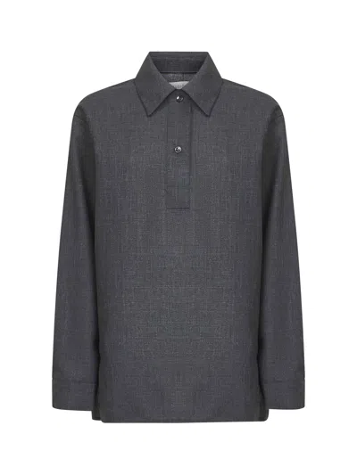 Long Sleeve Wool Shirt With Button Cuffs In Neutral