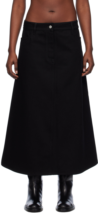 Black A-line Denim Maxi Skirt