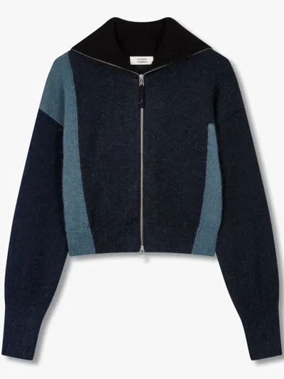 Colour-block Zip-up Cardigan In 蓝色