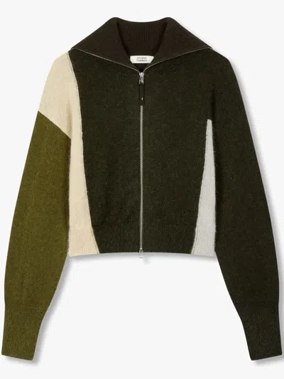 Colour-block Zip-up Cardigan In 绿色
