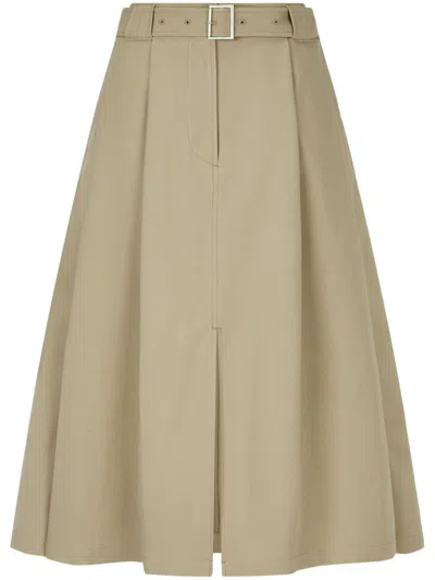 束腰双褶饰中长半身裙