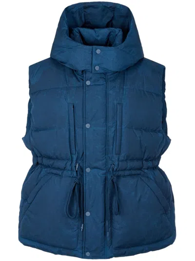 Detachable Drawstring-hood Down Vest In 蓝色