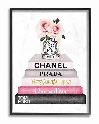 Book Stack Fashion Candle Pink Rose By Amanda Greenwood Framed Art