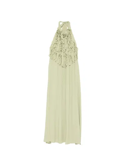 Fringed Halterneck Maxi Dress In Green